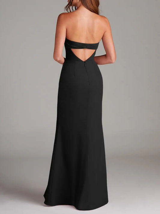Black Strapless Sheath Strapless Chiffon Dress-F0114004