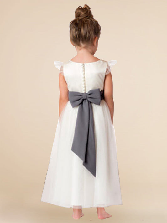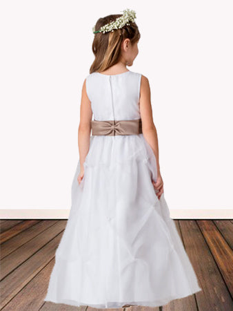 Satin A-Line Scoop Neck Sleeveless Flower Girl Dress-F500097