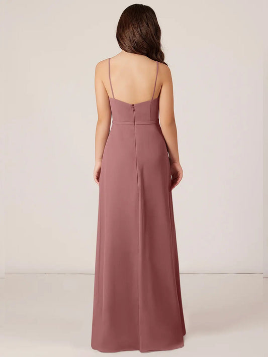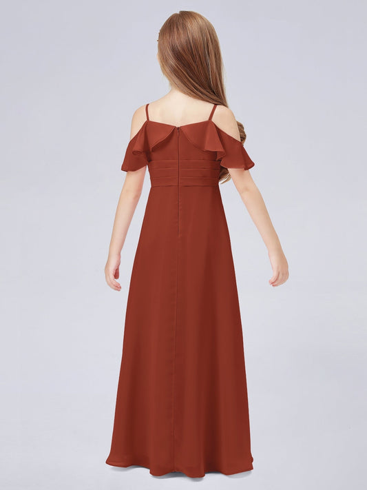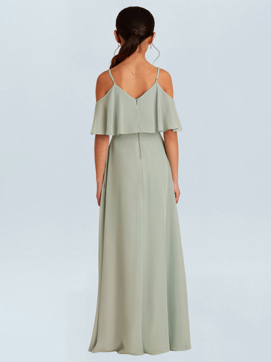 Chiffon A-Line Spaghetti Straps Sleeveless Junior Dress-FJ00012