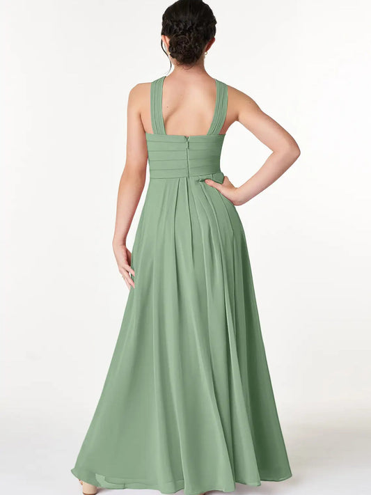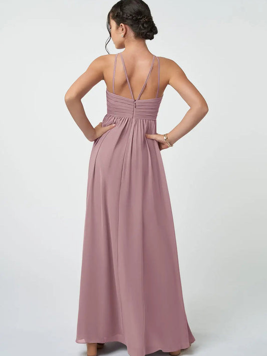 Chiffon A-Line Halter Sleeveless Junior Dress-FJ00010