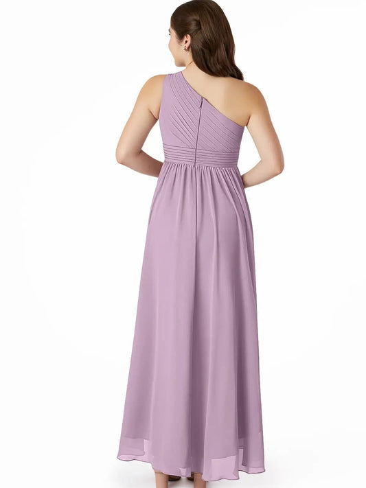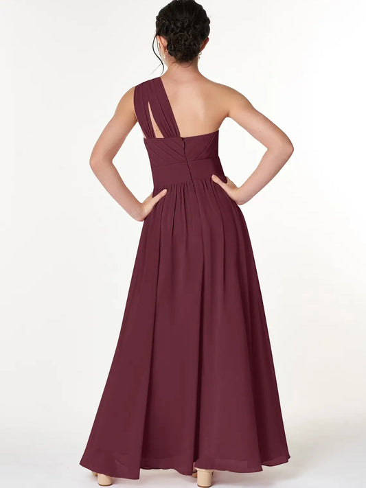 Chiffon A-Line One Shoulder Sleeveless Junior Dress-FJ00020