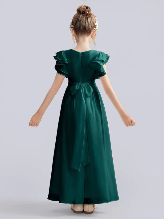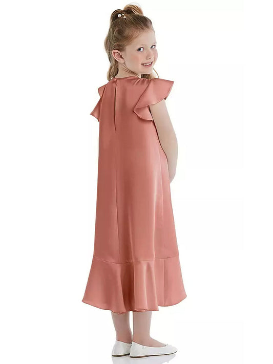 Stretch Satin A-Line Scoop Neck Half Sleeves Junior Dress-FJ00027