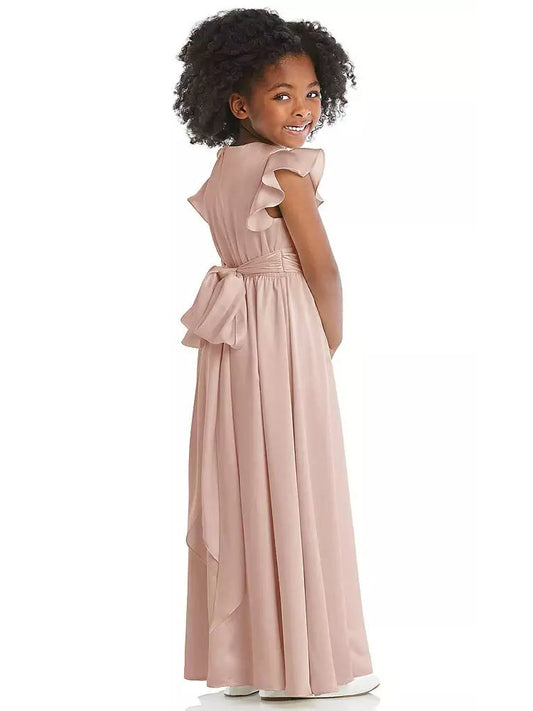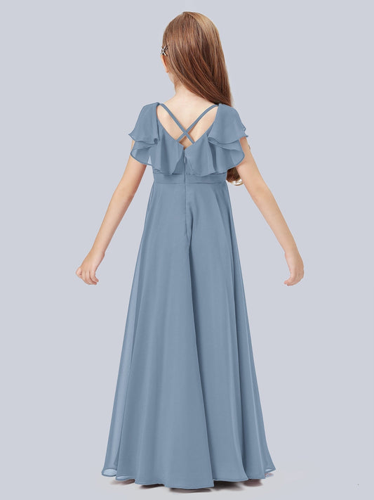 Chiffon A-Line V-Neck Sleeveless Junior Dress-FJ00007