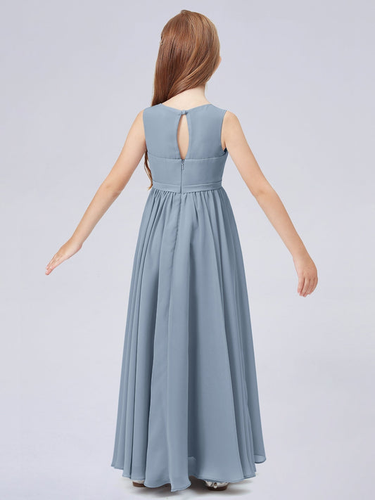Chiffon A-Line Scoop Neck Sleeveless Junior Dress-FJ00024