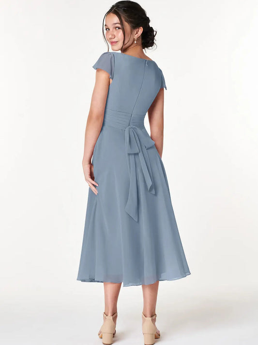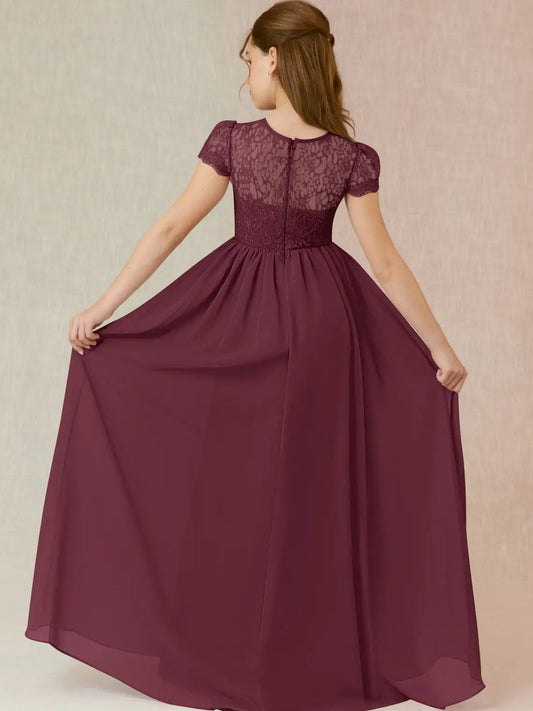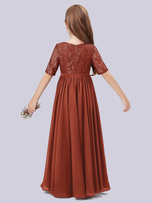 Chiffon A-Line Scoop Neck Half Sleeves Junior Dress-FJ00023