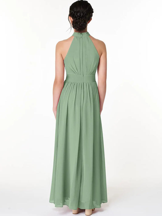 Chiffon A-Line Halter Sleeveless Junior Dress-FJ00004