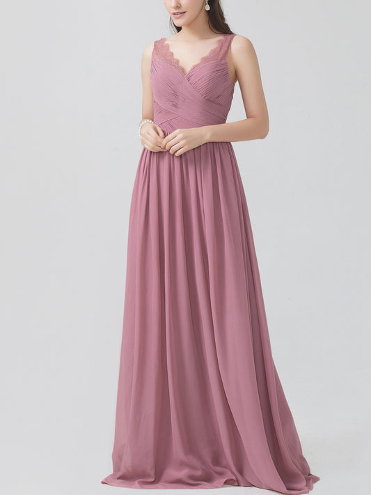 Lace Column V-Neck Sleeveless Bridesmaid Dress-F0119036