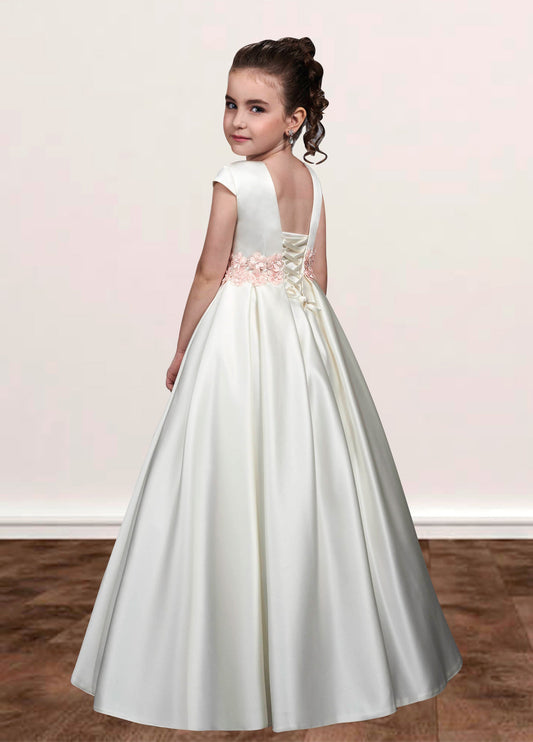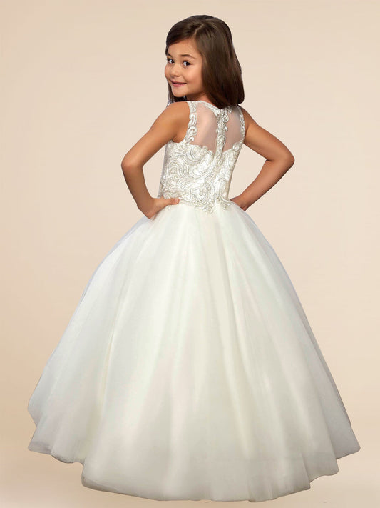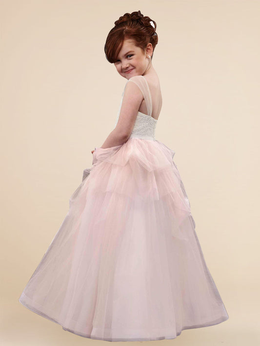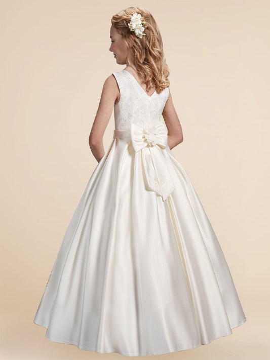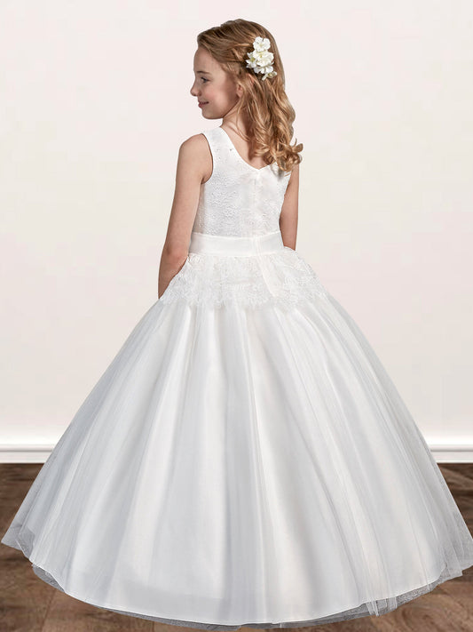 Lace A-Line V-Neck Sleeveless Flower Girl Dress-F500015