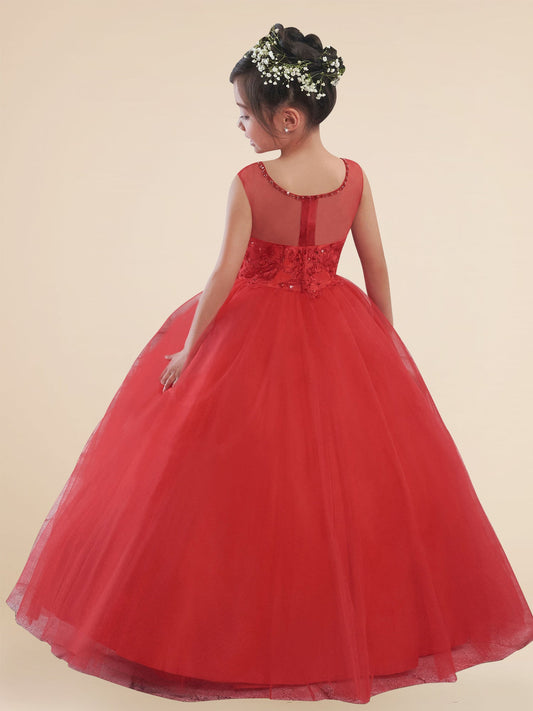 Lace A-Line Scoop Neck Sleeveless Flower Girl Dress-F500022