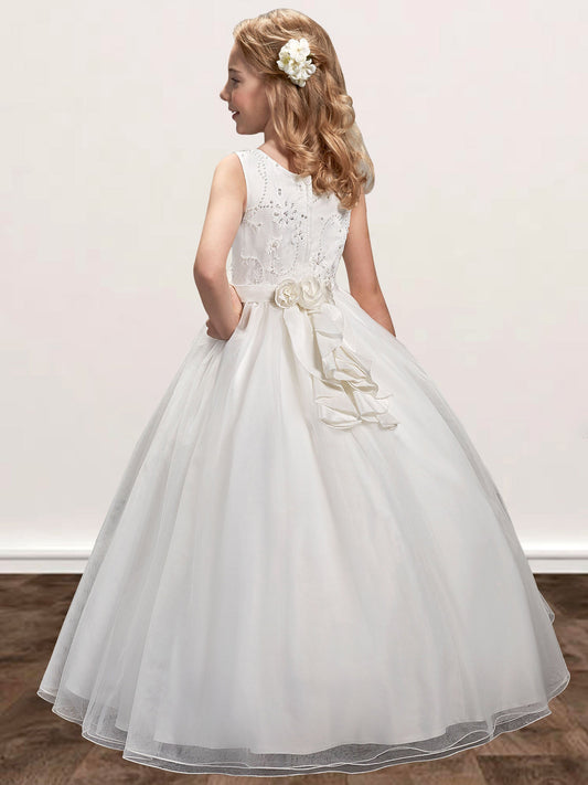 Lace A-Line Scoop Neck Sleeveless Flower Girl Dress-F500016