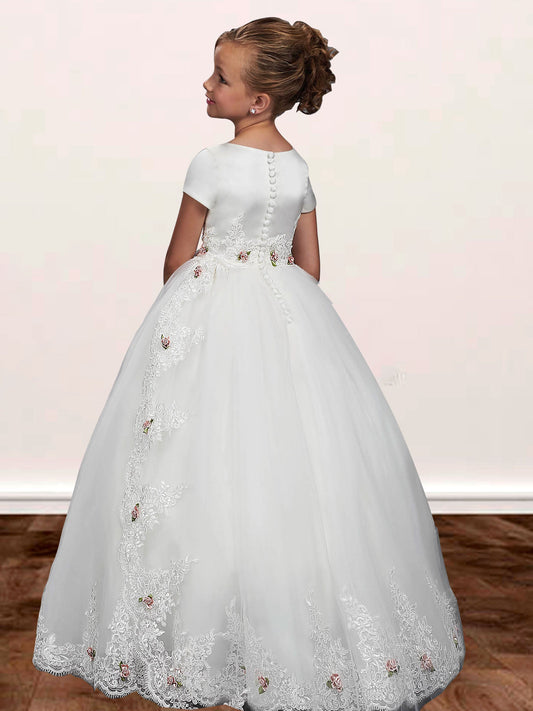 Lace A-Line Bateau/Boat Sleeveless Flower Girl Dress-F500024