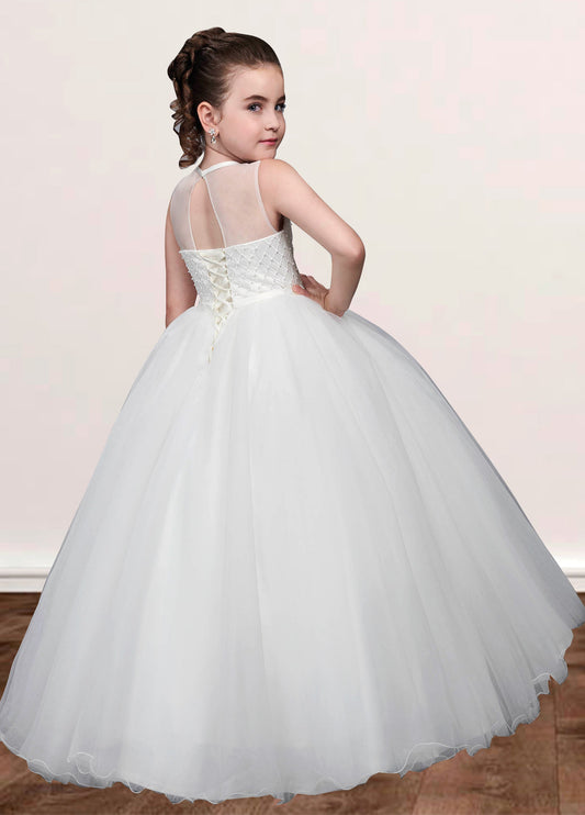 Lace A-Line Scoop Neck Sleeveless Flower Girl Dress-F500104