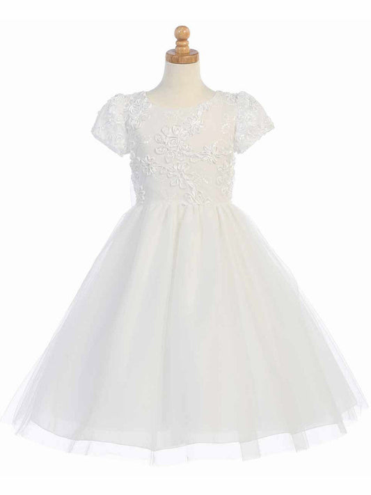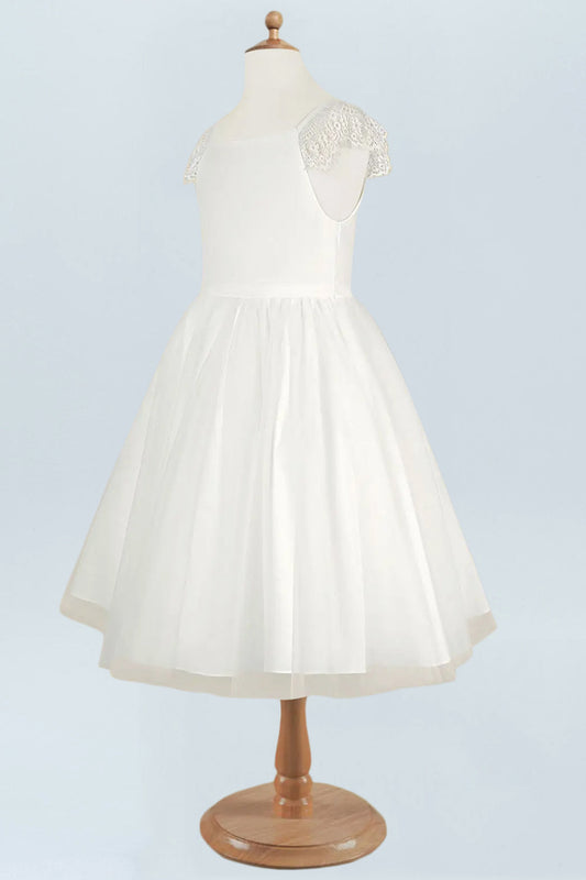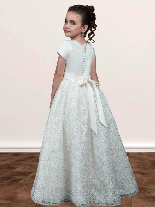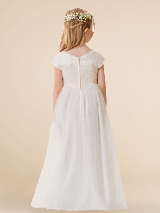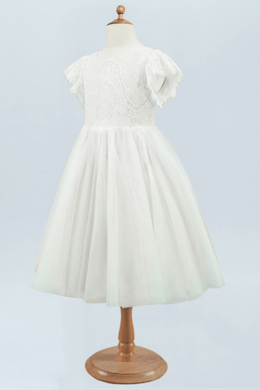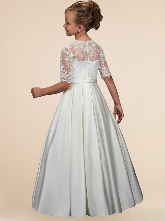 Lace A-Line Scoop Neck Half Sleeves Floweer Girl Dress-F500121