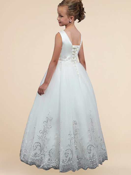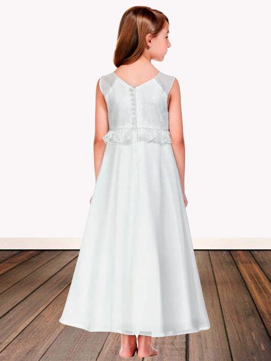 Lace A-Line V-Neck Sleeveless Flower Girl Dress-F500113