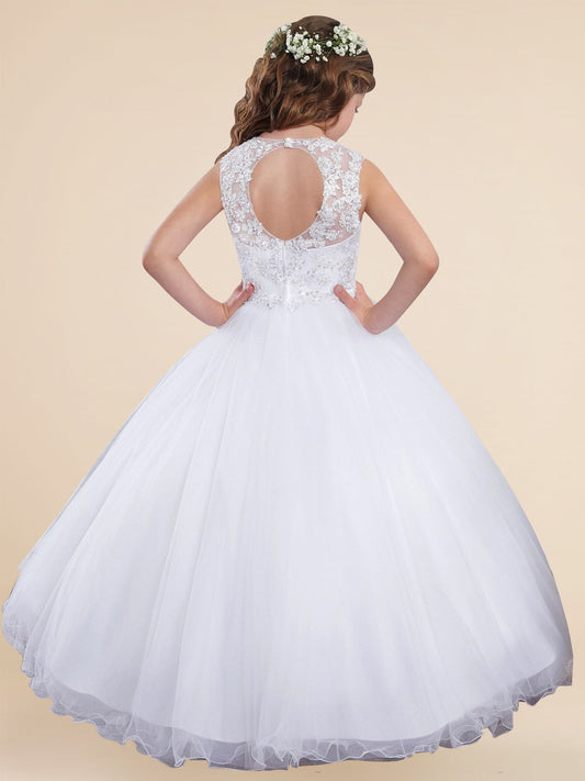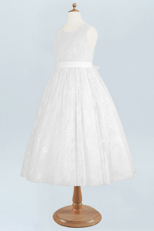 Lace A-Line Scoop Neck Sleeveless Flower Girl Dress-F500048