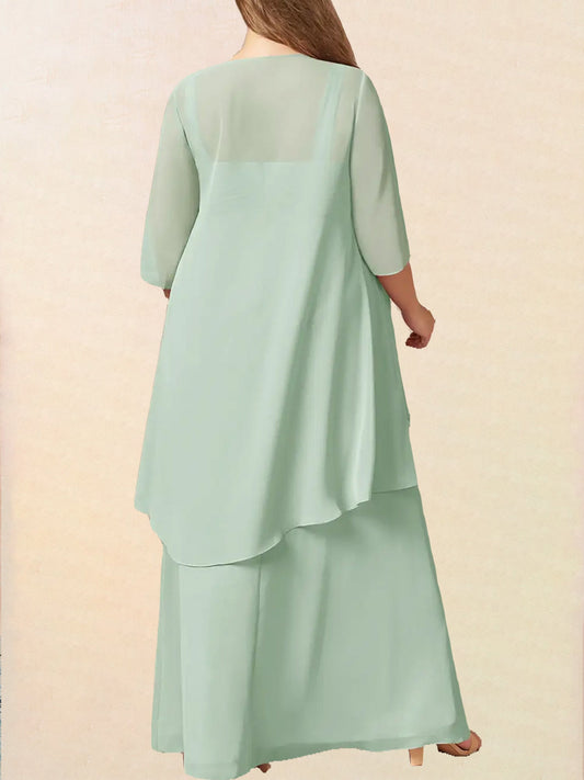 Chiffon A-Line Scoop Neck 3/4 Sleeves Dress-FM00021