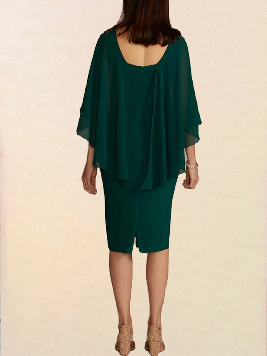 Chiffon Sheath Scoop Neck Half Sleeves Dress-FM00026