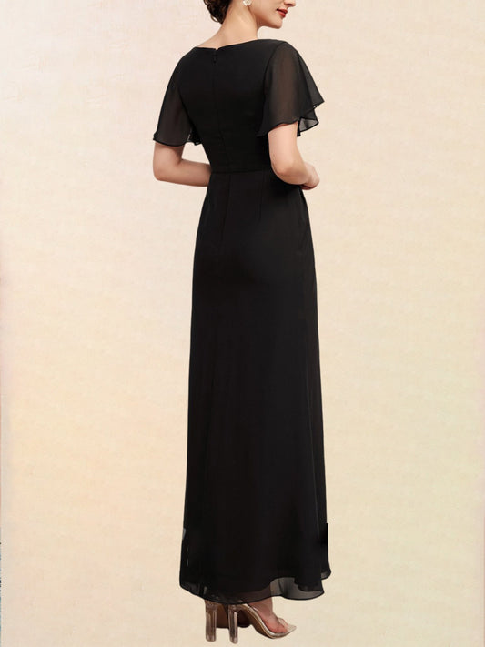Chiffon Sheath Scoop Neck Half Sleeves Dress-FM00009