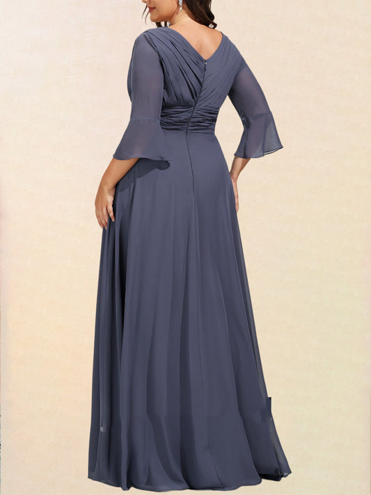 Chiffon A-Line V-Neck 3/4 Sleeves Dress-FM00027