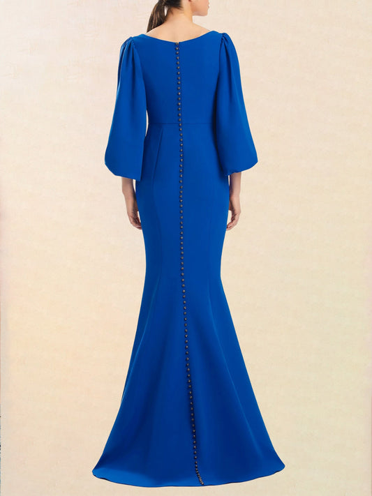 Chiffon Mermaid Scoop Neck 3/4 Sleeves Dress-FM00017