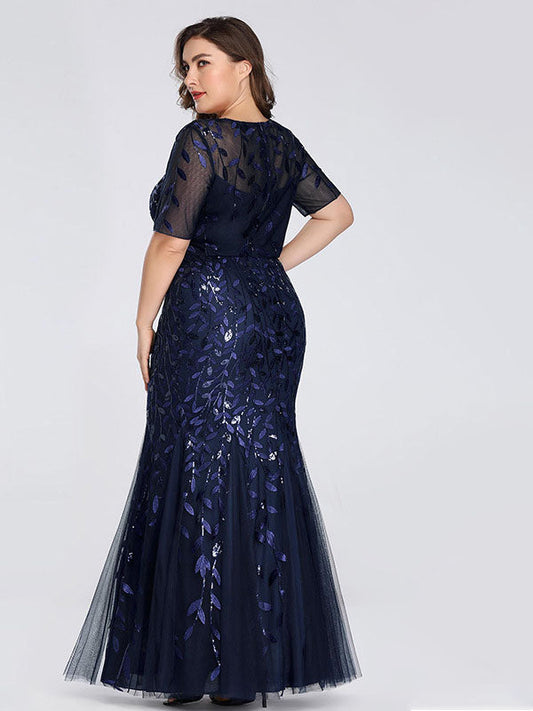 Sequin Mermaid Scoop Neck Half Sleeves Dress-FM00038