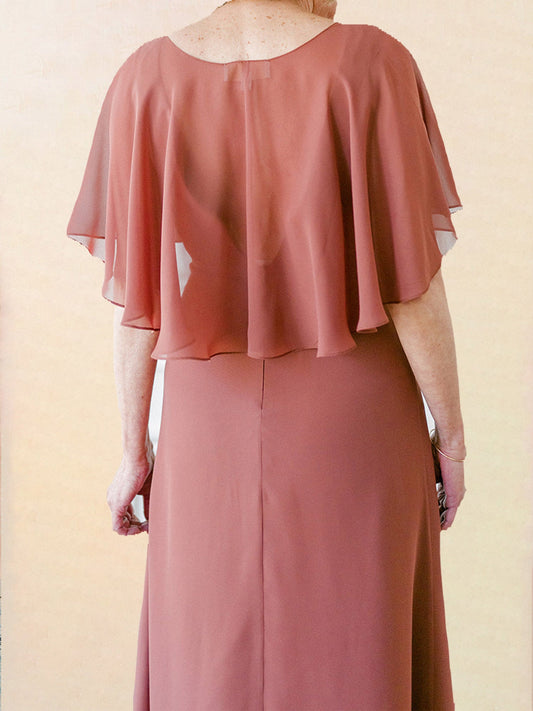 Chiffon Sheath V-Neck Half Sleeves Dress-FM00010