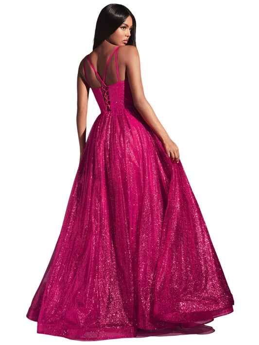 Glitter Tulle Long Dress V Neck Evening Ball Gown GD101682