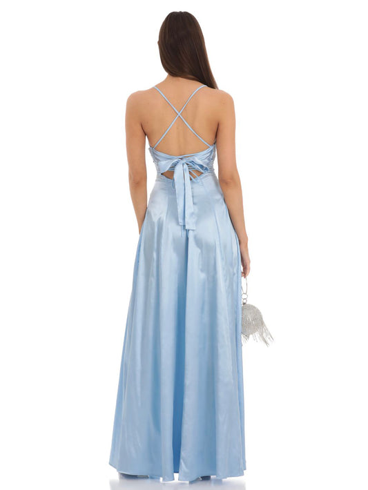 A Line Long Dress Silk like Satin Sleeveless Party Dress GD300023