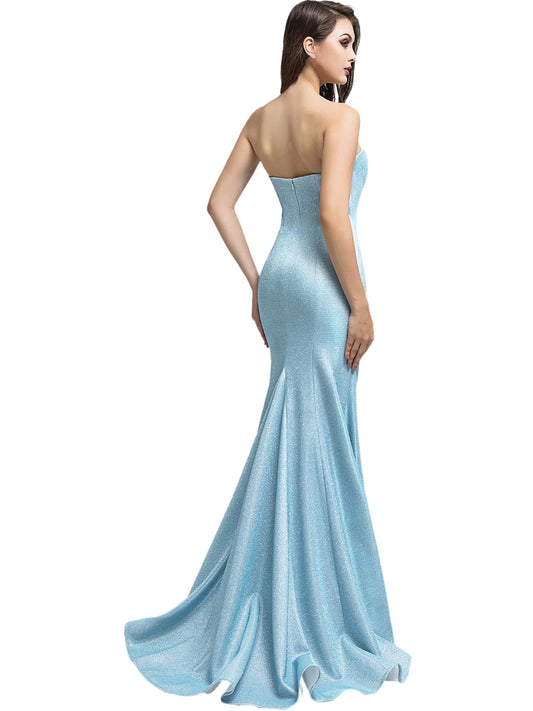 Glitter Long Dress Strapless Sleeveless Slit Evening Ball Gown B19393