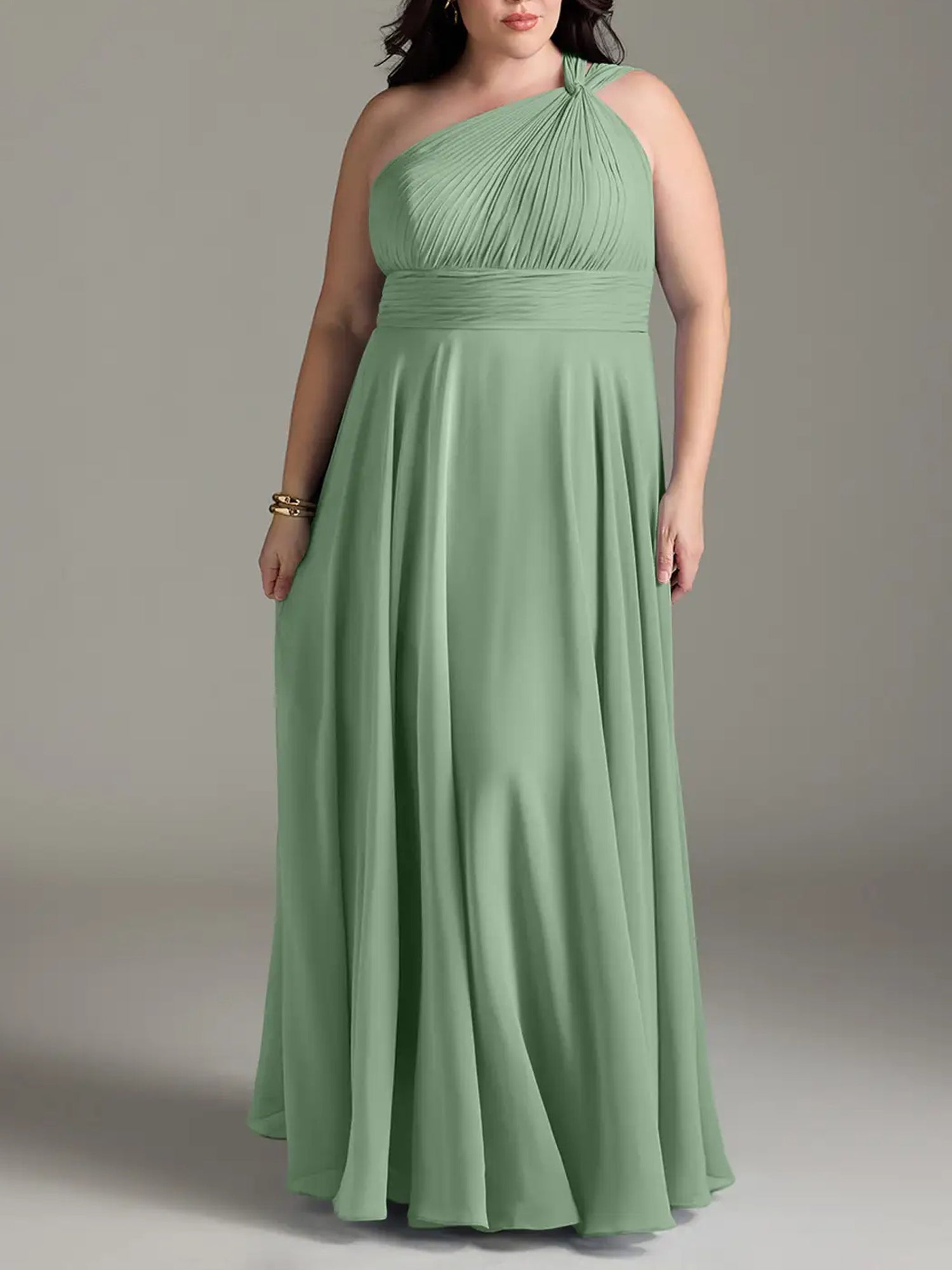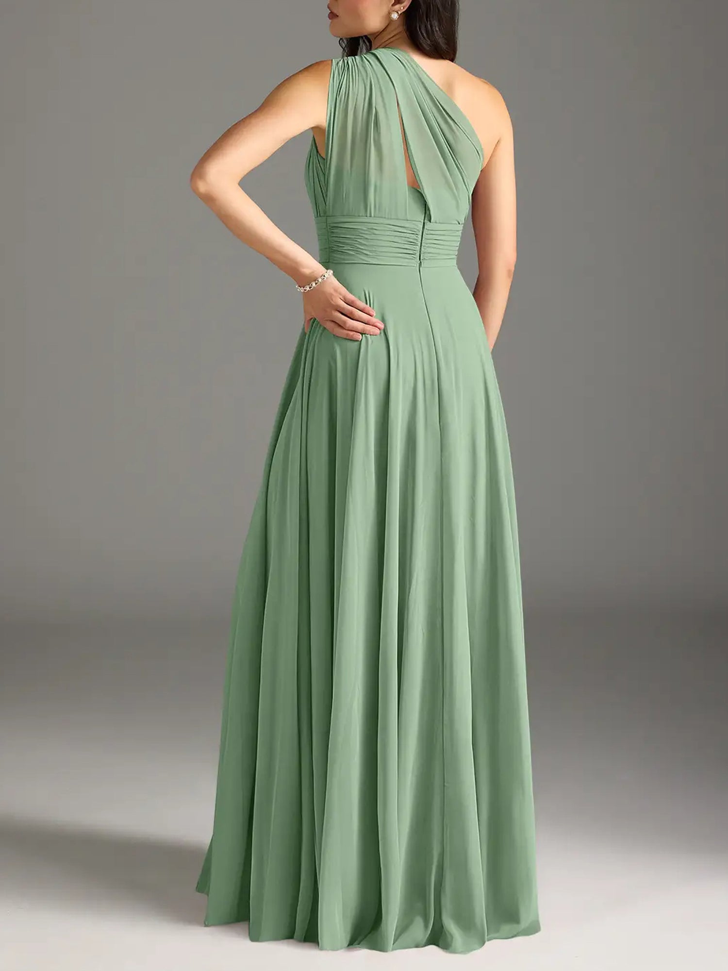 Chiffon A-Line One Shoulder Pleated Bridesmaid Dress-F0114014P